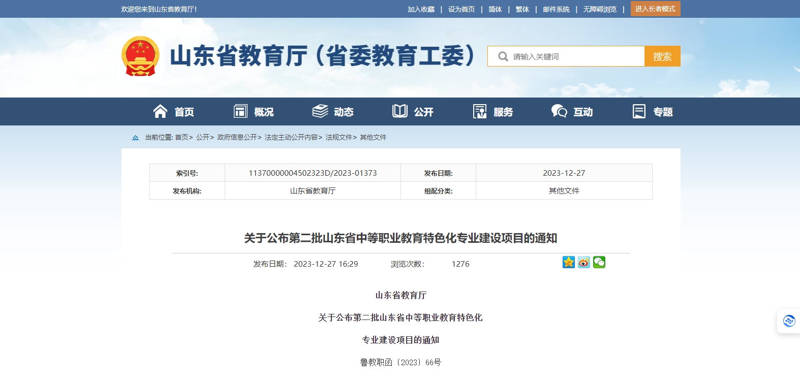 山東省公布第二批山東省中等職業(yè)教育特色化專業(yè)建設(shè)項(xiàng)目