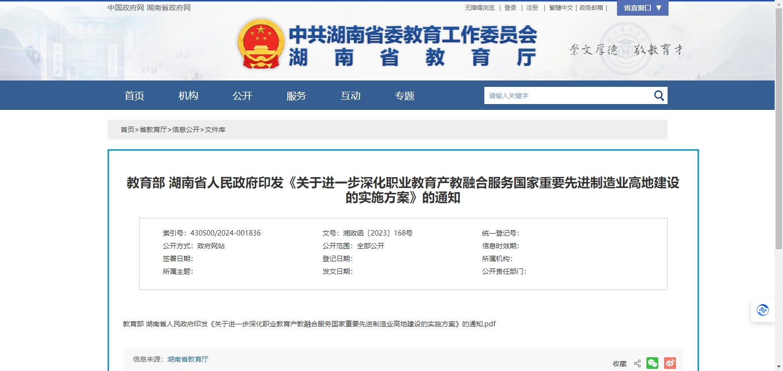 重磅!教育部 湖南省人民政府《關(guān)于進(jìn)一步深化職業(yè)教育產(chǎn)教融合服務(wù)國(guó)家重要先進(jìn)制造業(yè)高地建設(shè)的實(shí)施方案》發(fā)布