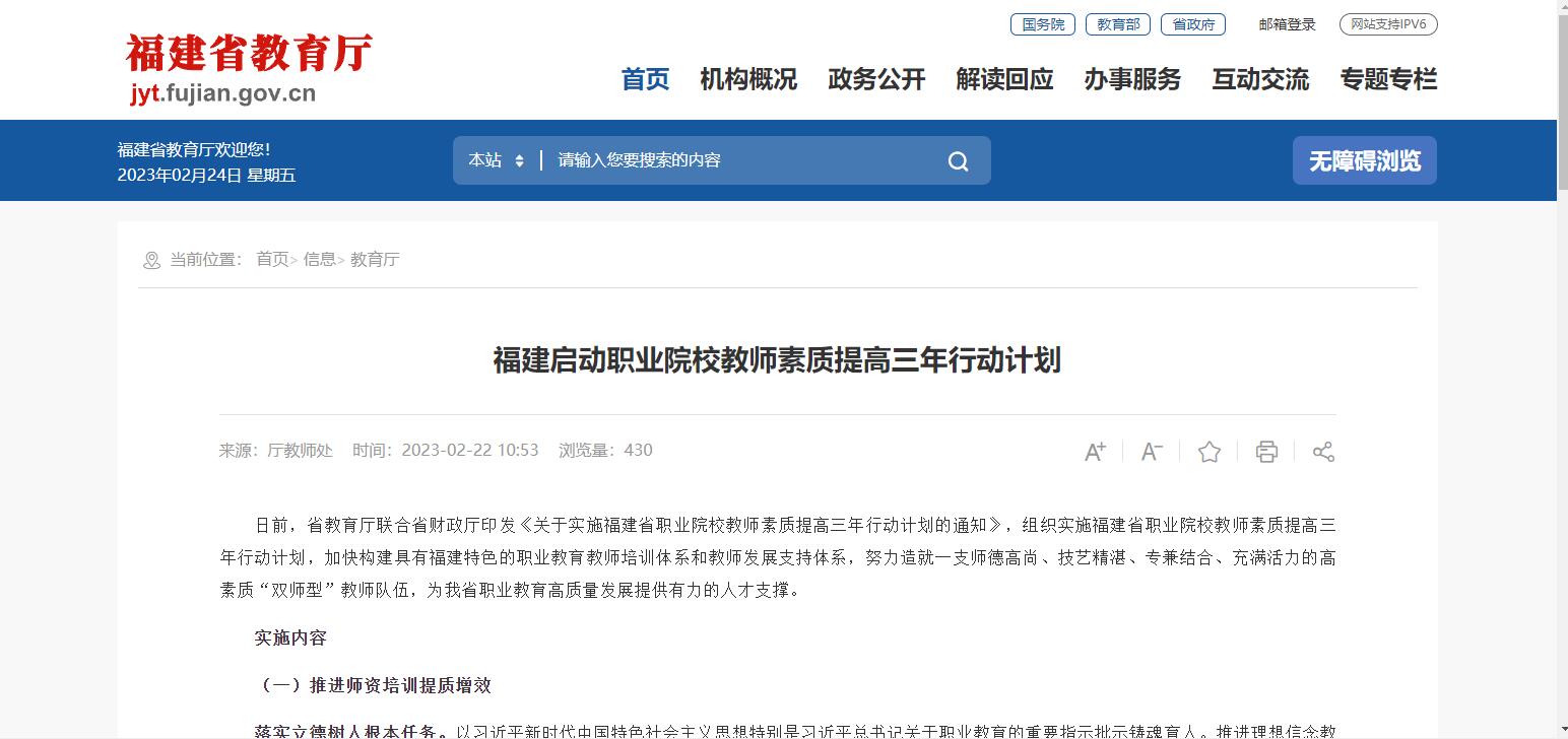 近日,福建啟動職業(yè)院校教師素質(zhì)提高三年行動計(jì)劃,提出加快推進(jìn)知識技能更新、提升教師“雙師”素質(zhì)、暢通教師校企雙向流動、打造職業(yè)教育領(lǐng)軍人才隊(duì)伍、創(chuàng)新職教教師培訓(xùn)模式等實(shí)施內(nèi)容。 ......