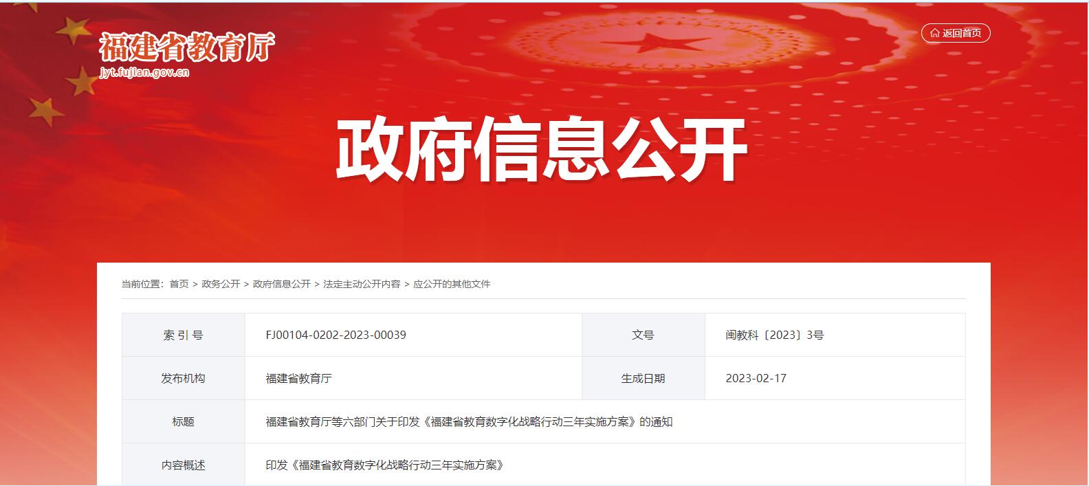 福建省教育廳等六部門關(guān)于印發(fā)《福建省教育數(shù)字化戰(zhàn)略行動三年實(shí)施方案》的通知