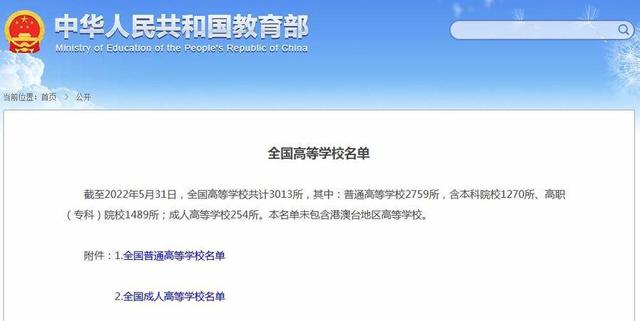 3013所!教育部發(fā)布全國(guó)高等學(xué)校最新名單
