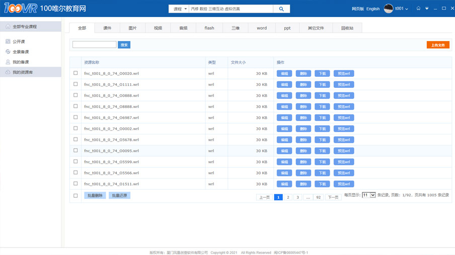 支持第三方教材導入,課題組備課資源共享,三維仿真資源編輯/修改,上傳/下載。